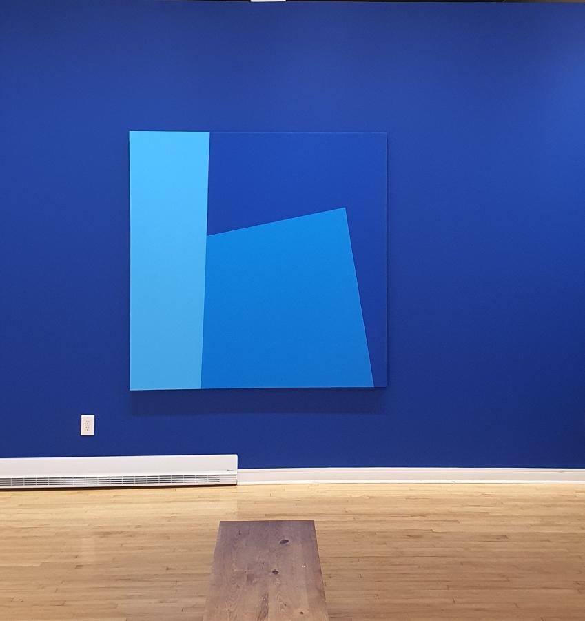 I've always loved making and viewing abstract painting—above all, the simplicity, the clarity and the calmness of Geometric Abstraction. In my practice and the subsequent experience of the viewer, its important to me to enable psychological and historical meaning that people can engage with. That is, I'm not interested in pure formalism and rely on the viewer's participation and interpretation to give meaning to abstract painting. Since 2018, I've been starting with haphazardly folded, colored paper, which I then photograph, crop and copy onto panels and canvases. While working with painted surfaces and materials, I became very interested in the history of painting in the 20th Century, especially Minimalism but also became quite discouraged as to my place in this history and the widely held notion that painting is dead. My attempt since then has been to extend the conversation and not shy away from categories such as interior decoration, ornament and the beautiful. I was encouraged in this idea while reading about the early works of Modernist artists such as Anni Albers and Sophie Taeuber -Arp. As well, I wanted my paintings to be integrated into their environments so created backgrounds in commercial wall paints to match one of the tones in each painting. That is, not individual paintings on white walls but colored wall sections that seem to absorb part of the painting or as in Ellsworth Kelly’s paintings to be influenced by the architecture surrounding them.